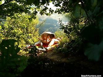 Cum-hungry beach gal performs skull job in the bushes